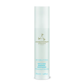 Aromatherapy Associates Hydrating Triple Rose Renewing Moisturiser is a luxurious moisturiser that combines the essential oils from three unique roses from Morocco, Turkey and Bulgaria. Roses are renowned for their powerful properties to strengthen, hydrating and rejuvenate your skin. Anti-oxidant and anti-ageing rosehip, red aquatic algae and frankincense protect and tone your skin, whilst locking in moisture to keep your complexion looking youthful, radiant and nourished. Suitable for all skin types, recommended for dry, dehydrated or mature, delicate skin.