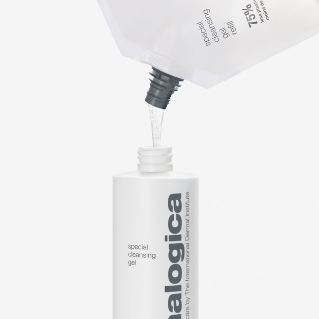 Dermalogica Special Cleansing Gel is a soap-free, foaming gel designed to thoroughly remove impurities without disturbing the skin's natural moisture balance. Calming Balm Mint and Lavender extracts soothe the skin, while natural Quillaja Saponaria gently foams away toxins and deep-cleanses debris.