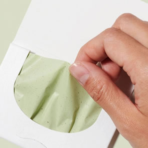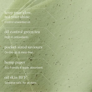 Ere Perez Green Tea Oil Control Paper are made from super soft hemp pulp paper, these convenient oil control weightless sheets absorb oil, eliminate shine and mattify makeup. Infused with anti-inflammatory green tea extract, to also help reduce redness and prevent breakouts. Your next must-have portable complexion touch-up, in a convenient waste-free envelope.