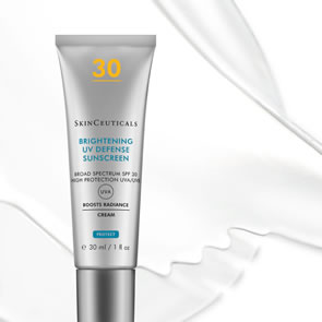 SkinCeuticals Brightening UV Defence SPF 30 is a lightweight hydrating fluid that promotes radiance and an even skin tone that helps prevent sun-induced discolouration and premature ageing. Brightening UV Defense SPF 30 provides high broad-spectrum protection against photo-ageing.