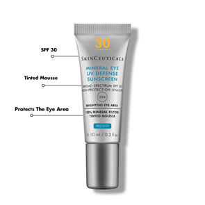 SkinCeuticals Mineral Eye UV Defence SPF 30 is a mineral eye SPF that defends, enhances and optimizes the entire eye area, including the eye lid. Mineral Eye UV Defense provides broad spectrum UV protection without migrating into the eyes. A unifying tint enhances skin tone, while creating a smooth, optimal canvas for makeup application.