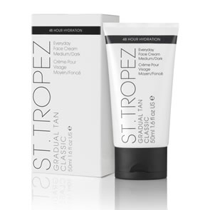 St.Tropez Gradual Tan Classic Everyday Medium/Dark Face Cream is an ultra-hydrating, non-pore blocking tanning lotion that builds as you reapply, to create the perfect tan to suit you. Drying instantly, this Gradual Tan Face Cream has a soft, smooth finish that can be used as a make-up base or instead of make-up. Simply apply like a normal moisturiser and wash your hands after use.